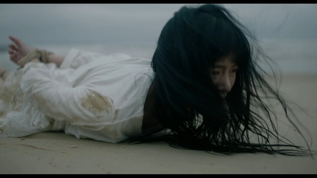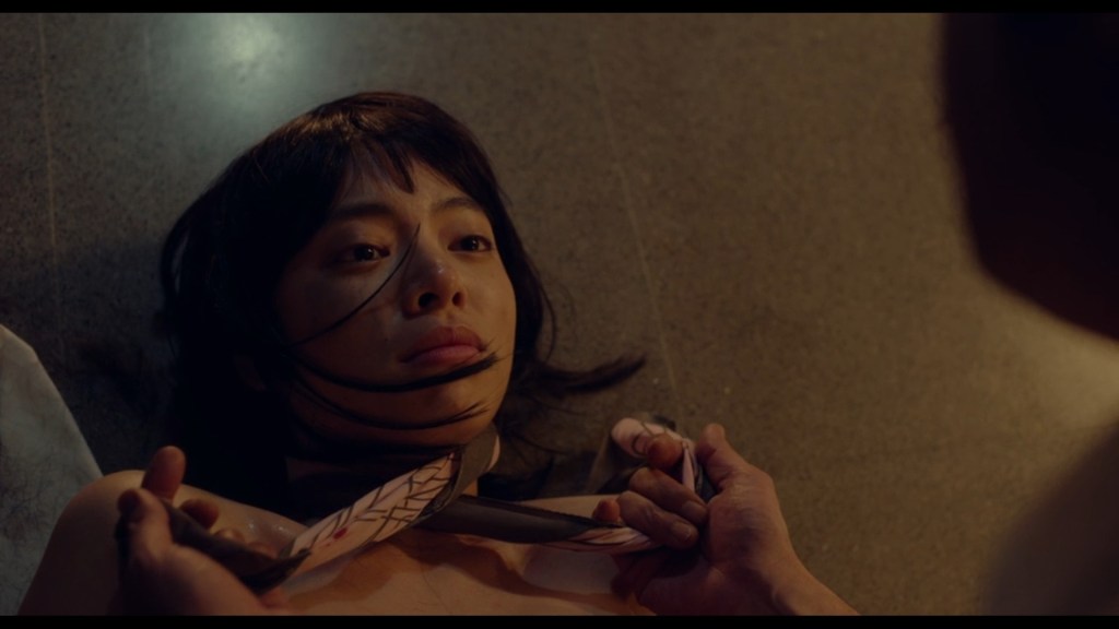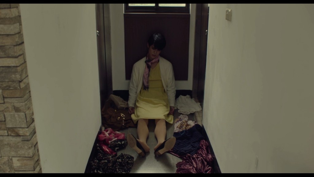 Mari’s father’s participation in the story is omitted, even though he plays an important role in the dénouement on the ferry—the entire sequence that was cut from the original—when he discovers the translator and is accidentally killed. Instead, the end of the film plays with ambiguity, with Mari wearing the yellow sweater, then the blouse, and the opacity of when the translator’s body is found, a man with a criminal record whose body no one recognises except her. The end of the film adds importance to the nephew/son going to the Iris Hotel, foreshadowing that the situation will continue, but, as I said, key dialogue has been cut.
