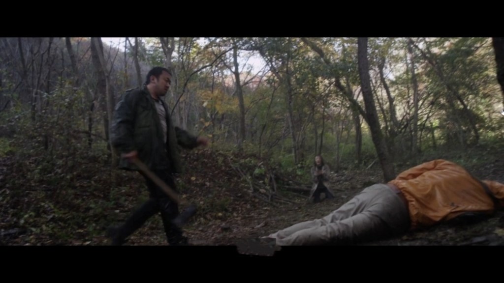 He takes him to the bedroom with Minghee and the two fuck resolutely, but Sung-cheol wastes no time and shows the wife – through an interconnected window – her husband in the act of sex. She has no time to be outraged because the enormous Sung-cheo sexually assaults her, hugging her from behind and undressing her to abuse her completely. There is no morality to speak of, no lessons in ethics, only sexual instincts through domination and humiliation of the guests who manage to arrive. Incidentally, those who arrive after So-yeon and Joon-sik end up murdered for resisting the uncivilised nature of the island (just like a fawn by a predator or the squirrel I mentioned above). We already know how the story will end in the middle of the forest. Chance would have it that that piece of iron was there when the huge predator rolled over and almost killed the unfaithful husband with the stick. As I said, sometimes, and this was the case here, the remedy is worse than the disease.