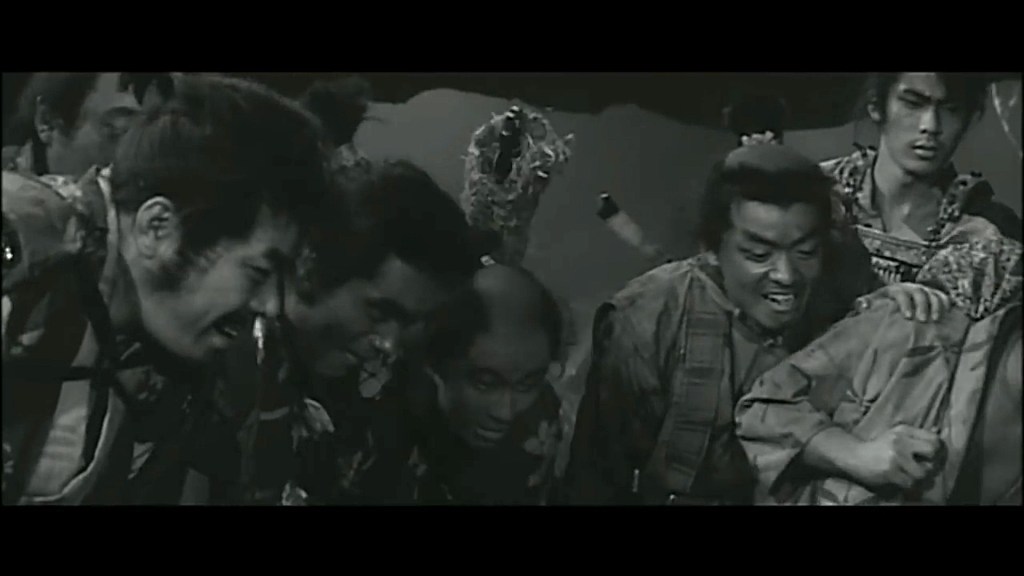A highly entertaining sentimental metaphor for the revolutionary counter-feudal insurgency led by a motley crew of bandits with no trade or profit… or almost none. Given the bloody beginning, it is not immediately obvious that any of the rogues led by Kashira would ever be interested in freeing the 28 farmers from Yaeyama who have been enslaved to build, at a forced pace, the enormous wall called the White God of War. When the farmer Seisuke arrives to rejoin the band of thieves, they make a little party of joy, and in the same bunker there is a clash between several of them, especially between the libidinous Hayato, skilled with the katana, and the young Gen (an expert dagger thrower) who always carries a flag with a strange symbol.