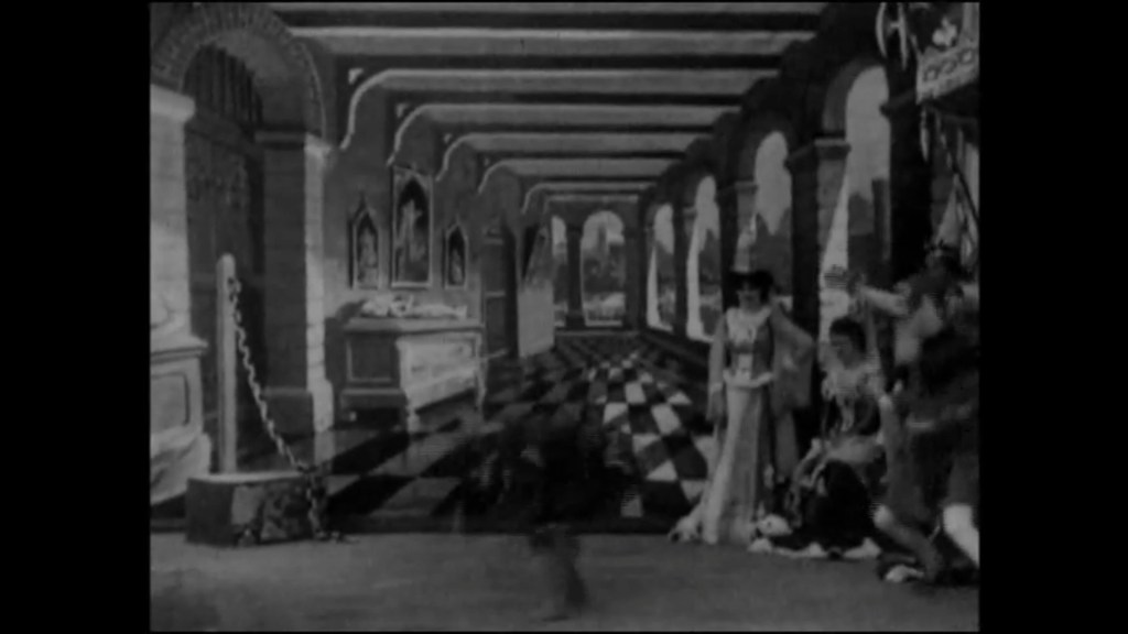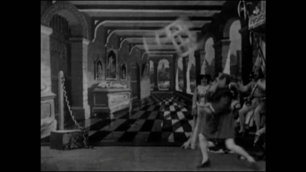 I won't dwell on the work of coloring frame by frame with aniline dyes, at the exorbitant cost of 6,000 to 7,000 FRF per copy before 1960, which, according to an article in Cahiers du Cinéma, required around 200 colorists. I'll dwell on Méliès's illusionist before he became a cinema pioneer, turning the acrobat into a chair using the stop trick known as the "crank step," with which Méliès stopped the camera, removed the actor from the scene, replaced the chair, and restarted filming. This created the illusion of an instant metamorphosis, fascinating for a short film that today hasn't lost its magic, even with so much AI and Photoshop apps. It's true that its duration is less than 5 minutes, but through the sorcerer, the avant-garde Méliès used the most sophisticated technology of the early 20th century to lash out with fantasy and social sarcasm and emphasize that the disorder of the magician cannot be controlled by royalty.