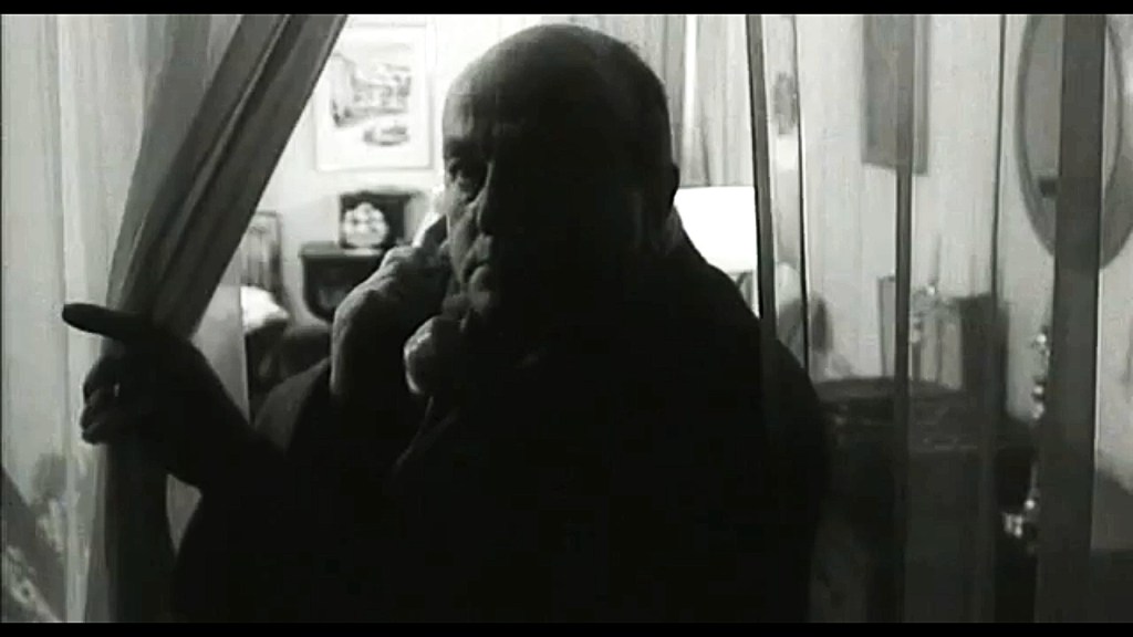 Let’s give the soft, vague mystery a chance… okay, the mystery that isn’t really a mystery. For it to be a genuine mystery, we would have to believe that Dr. Lefevre sincerely feels a deep sense of mystery at being approached by an unknown woman in the apartment building where he went to make a house call, even though he didn’t find the patient he was supposed to see at home. So far, the mystery is still in its infancy. The stranger wants the doctor to remember a man who is not his patient—according to Bernard Blier’s character—and whom he does not recognise either from the photo or by name (Guérin).