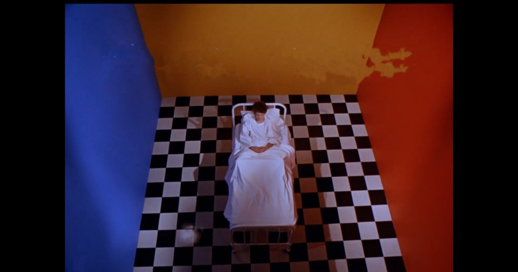 The style may refer to the French Nouvelle Vague, such as Godard or Resnais, or even Claude Jutra, due to its fragmentary and indeterminate nature, which leaves us wondering whether it is a drama or a dramatised documentary. Even so, the semantic content of the script is far from profound as a critique, as can be seen from the laboratory, or the girl in a baby doll or negligee who acts as a nurse for Garou. I understand that this film was quite enthusiastic in appropriating, in a certain way, the premises that Harun Farocki highlighted in his protest at EXPRMNTL 4 (1967) in Knokke-le-Zoute, where the German questioned experimentation without activist commitment or denunciation of the bourgeoisie. However, I insist that the accusation of state manipulation to train and recruit for the war industry is rather weak.