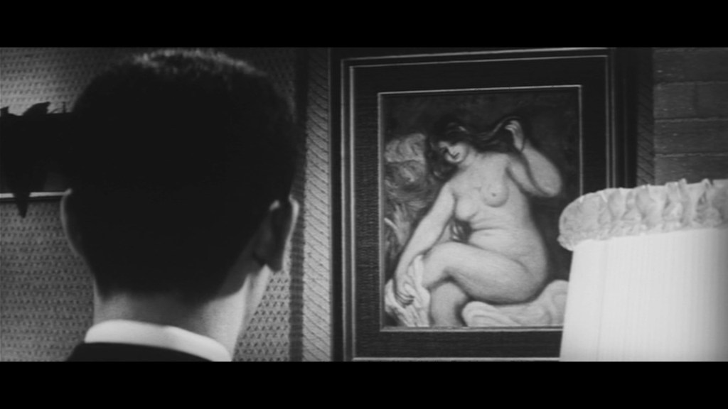 Etsuko’s brother investigates the disappearance of the building’s typist, and the husband’s hallucinations and visions begin to force him to drink more until, upset, he leaves the house and crashes his car. He doesn’t break any bones or anything and is cared for by his wife Midori, but on stormy nights, the electrical service continues to malfunction and he continues to see visions.