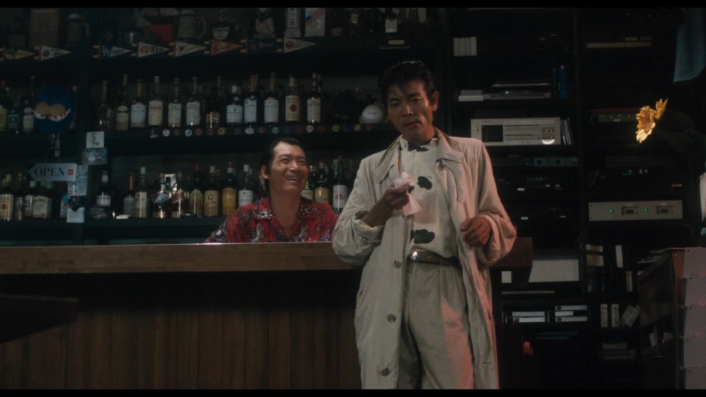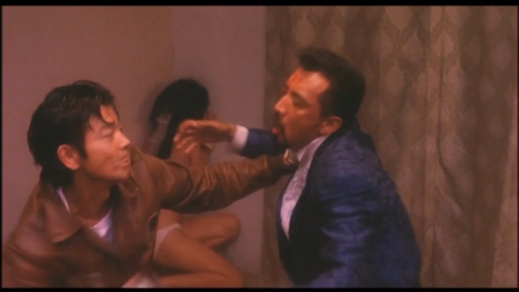 A couple of guys, one of them quite funny with his knife, follow him closely until they have an altercation in an alley in the district, but nothing serious happens. He gets beaten up again when he is ambushed after having a Mexican Corona beer in the district where the disappearances are taking place. Although he returns with a bat and settles the score with both guys, they are smiling but toothless after being hit with a bottle and beaten up. Shibata has time to dismantle, together with Sayama, the residence where many young girls were taken to be raped while rich bourgeois pay the entrance fee and watch from behind a glass window. A fun Hollywood scene in the style of Charles Bronson breaking your head or, if you prefer, Belmondo half-killing everyone. His date with Akiko, for whom he seems to feel something deep, is interrupted just as he is walking with his camera towards Mount Rokko. When the supposed suicide of the boss Tomizawa occurs, Shibata assumes that revenge came from one of the two guys who were following him, who came from Yokohama to get hired by the boss and avenge the death of his exploited sister. Up to this point, the two guys following him were part of a Tosei clan, but it turns out that they will even help Shibata, giving him the address – Nadahama Town – where Machiko is staying with her lover Ryoji.
