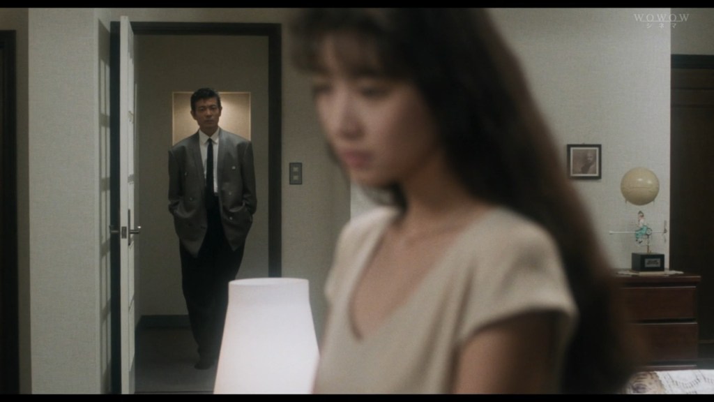 They escape by car, and here it looks like a scene from a Henri Verneuil film with the chase, and then almost in the underground. Finally, he fulfils his promise and returns Michiko to her parents, so this time he accepts the offer from the salesman and tailor Mr. Toh to buy a jacket and a tie. The ending, however, will not be this one. Sayama calls him when he is already dressed up for his date with Akiko and tells him that it has been determined that it was a young, beautiful woman with long hair who entered the hotel on the day of the boss’s death.
