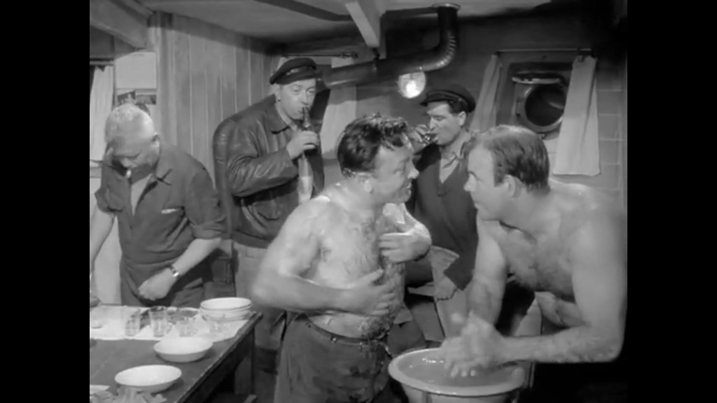 How is it possible to accept the flash of pure insanity that appeared on the face of Commander Eric Muller, once a sea captain, when he heard—disguised as Arsenio Lupin—the crazy idea of sinking a ship to collect 600 million in insurance money? Of course, Freudian theory of motivation and conflict points to a retired captain in professional decline whose repressed desires for transcendence, power and legitimacy will be satisfied by his young lover Catherine Moughin. It wasn’t the 600 million that triggered it, but rather the urgent erotic urges of a man with prestige and wisdom but no practical authority, while his lover, played by the beautiful Mylène Demongeot, rubs shoulders with young idiots who take on symbolic relevance in the practice of his life. In fact, the defence mechanism Muller uses to justify himself is intellectualisation, deluding himself that the sinking caused by the bomb will be without victims – which will not be the case when the stoker dies, as the imponderable reality will have to teach the old sea dog.