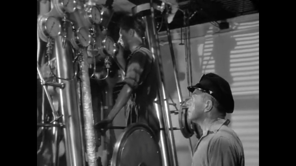 It is not an exceptional work, especially because of the odious lesson that someone added at the end as a moral for Muller’s change of plans, but at least it has a couple of interesting scenes, not only because of the drunkard looking for his dentures (the last film appearance of Jim Gérald, who died during filming), but also scenes of the steamship’s engines with coal-fired boilers prior to those used with diesel.