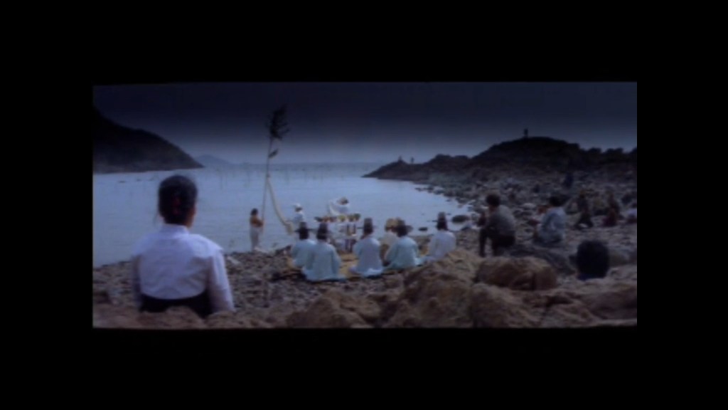 The protagonist’s feverish convulsions, which incidentally remind us of his mother’s need to see or be in front of a fire every day, lead him to a psychologist or doctor, who assures him that ‘just because my mother was a shaman doesn’t mean I want to be one’ (00:53:25). This ‘calling’, let’s say, from the legacy that his mother may have passed on to him in his genes, is what Shin senses must be affecting him, and this story is the journey to find his mother. To do so, she will recover her childhood, and we, the viewers, are grateful for this because, as she recalls the abusive treatment she received from her stepfather Dolsoe, we also understand why her mother asked to participate in a shamanic ceremony in the port of Heoryeong. The director expresses, albeit discreetly, his distrust of Korea’s progress in Christianity, represented by Shin’s wife, and therefore, as seen from a Western perspective. On the other hand, the crux of the film offers a glimpse of the indigenous nostalgia for Korean traditions in a shamanic ritual led by women (women who have resisted modernity since their persecution under the dictatorship of Park Chung-hee); a ceremony that uses a type of ‘muga’ singing (according to some sources listed by Wikipedia) and with the ocean drum in the bay, seeking to balance – through specific rhythmic patterns and elemental symbolism – or contrast the Christian ceremony taking place in parallel in the same sequence of the film.