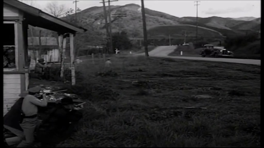 She urges Guy to kiss her even though they are being pursued from Waco, Alvarado, and Wichita. The scene of Province bathing in a tub in Neosho, Missouri, is worth seeing. After a shootout, Guy’s brother Chuck arrives a few days later. Sheriff Harry Carter is killed, and they continue their escape to Casey, Iowa, on 28 June 1933.