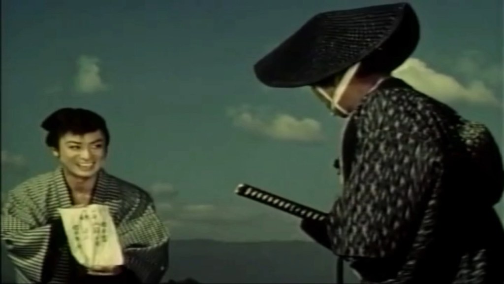 And so, after murdering Oyo, Falcon (Toyama Kinshiro) disguises himself as a worker and calls himself Jingoro to work on the enormous pieces of the giant clock made with instructions high up on the mountain to cause a loud noise throughout Japan from there, assassinate the Shogun and take over the government. Impersonating the carpenter Jingoro, he befriends and even forms a relationship with the beautiful Ohan, who sooner or later realises that he is not a normal carpenter, but does not betray him because she sympathises with him.