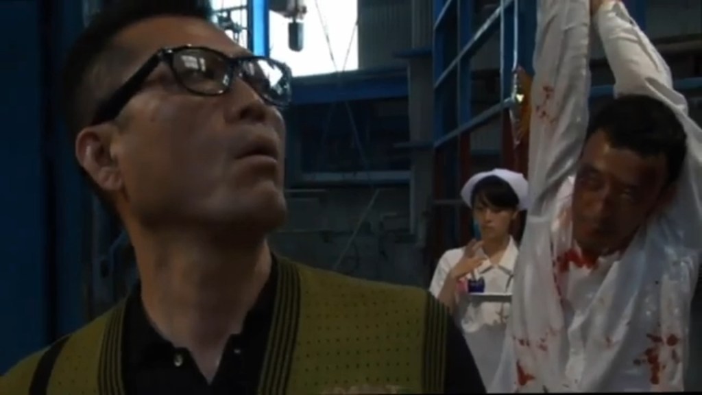 Until the present day, with his companion bruised and hanging, his luck takes a turn for the worse when Kumanohara arrives demanding what the viewer now knows: the body of his worst enemy, Kijima. He says he wants to see his head and his eyes and wants to see him dead this time, especially after the time he failed to kill him with a shot and, upon returning from Sekkaido, encountered a Gokuki—a demon from the underworld who cannot die—and, after rambling on about his autobiographical nonsense, attacks the boy and victim, urging him to say where the body is. and then, as is his twisted custom, he set out to explain the unbearable verbiage about the 18 portions of human liver he hoped to obtain from his enemies, fried with spring onions, costing 11,700 yuan. He would have continued to amuse himself with the baseball bat, had it not been for the fact that his luck ran out when Goku-Oni arrived, smashing heads, and it was his enemy’s turn. This time, no one could save the little man. A good ending.