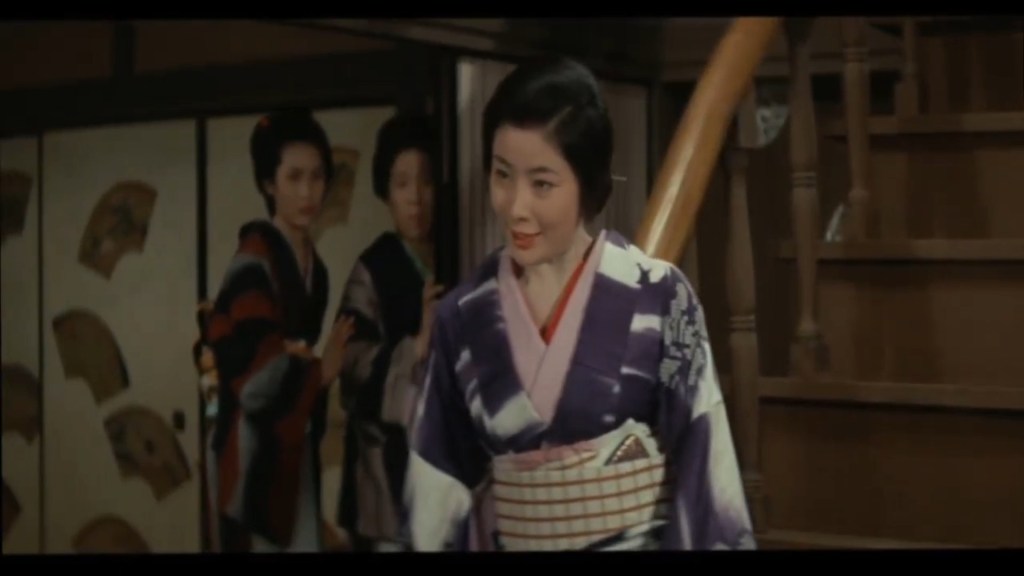 As the deadline was about to expire, the beautiful Oryu, an intrepid geisha who had backed him up in a violent scene at the beginning, when Yoshida was being pursued by men from another clan to settle scores, pulled out a gun and held the mob inside the gambling den.