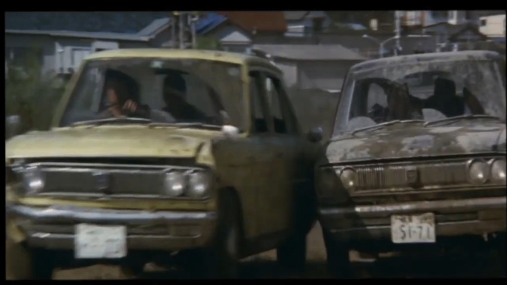 What triggers Shiju not being paid is Kusunoki’s unexpected reaction, breaking into Owada’s property and kidnapping both Owada and his wife to take them in the middle of the night to a remote location and force the woman to dig a hole to bury her alive. There is no doubt that Fukasaku’s direction is characterised by a dynamic and violent cinematic style.