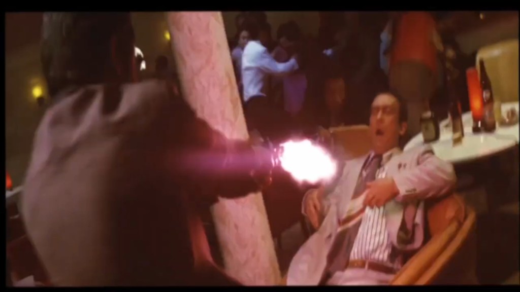 The Jingi Naki Tatakai series, of which this film is a part, is considered a deconstruction of the myth of the yakuza as an honourable figure, showing instead a world of senseless violence (see the stupid death of Taroya, the younger brother), constant betrayals and a profound lack of humanity. The strength of the film lies where many see the director’s laziness due to the lightness or crudeness of many scenes, especially the one that closes the story in the restaurant when the member of Shiju’s group pretends to dance sweetly and suddenly runs towards Aihara and shoots him at his own banquet at the table, similar to the scene in The Godfather with Al Pacino.
