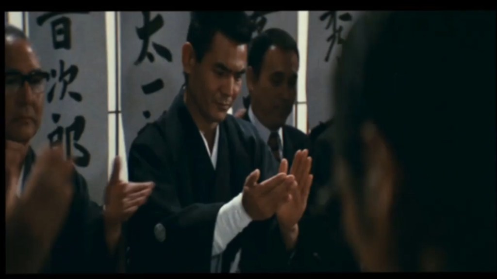 The lack of honour referred to in the subtitle is literal and begins not only with the mafia’s failure to honour Bunta’s character, but also with the humiliating way in which Owada’s son-in-law kneels to ask for a loan of 3 million yen to pay his debt for not having gone to prison.