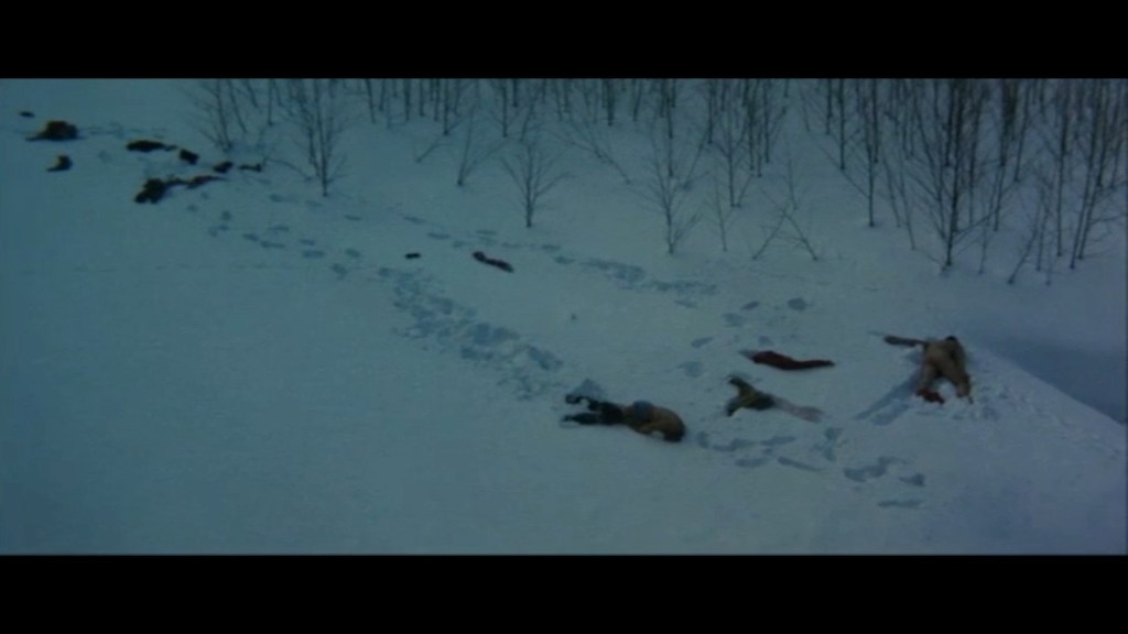 Returning to the plot, the innocent-guilty man has to escape to seek the revenge that we ‘all’ want to be unpredictable but which will not be, and I’m sorry to spoil it, except for the path to achieve the goal. Kazue was convicted for defending himself and allegedly stealing a fortune, so while he is on his way to dispense justice against those who framed him for what he did NOT steal, such as Goda and Tomorani, the convict Kuniiwa Kunizo sticks to him like a leech in order to get half of what he theoretically stole. They will go hungry and almost freeze to death (predictable), they will have to watch other fellow escapees die, such as the toothless Kazami from cell 52, aged 62 (predictable).