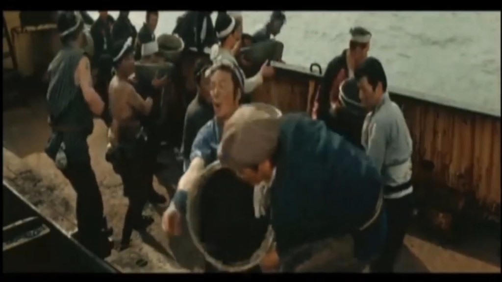 El antihéroe Kingoro, arriba en un momento álgido del “flujo de carbón”; el filme se ambienta en una era donde el carbón mineral era un recurso clave en Japón, especialmente en regiones como Kyushu, donde se desarrolla parte de toda la serie. Desde ese contexto histórico, los yakuza a menudo controlaban el “flujo” -transporte, extracción y comercio- de carbón de minas a puertos o mercados, pero obviamente las disputas sangrientas estaban a la orden del día debido a monopolios ilegales, luchas de clanes -como la de Omura gumi o la del grupo Isa de Wakamatsu- y, lamentablemente como aquí se verá también, debido muy comúnmente a la traición de amigos o compañeros laborales que eran sobornados por familias rivales para sabotear, o corromper los negocios.