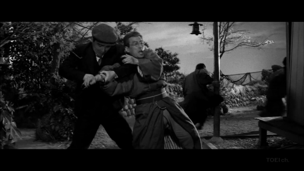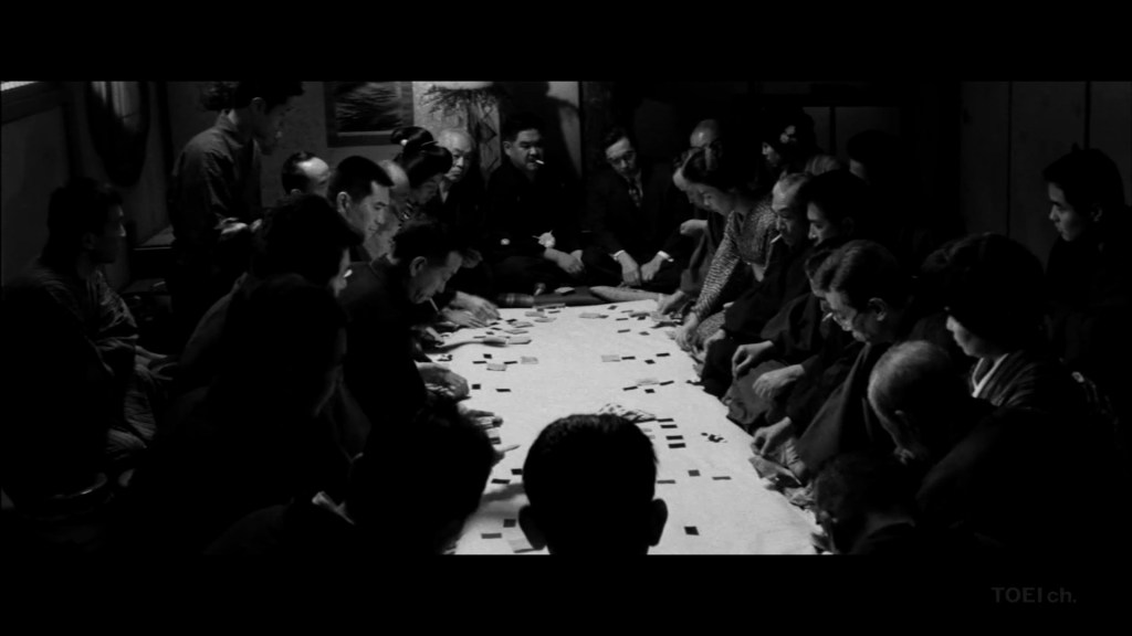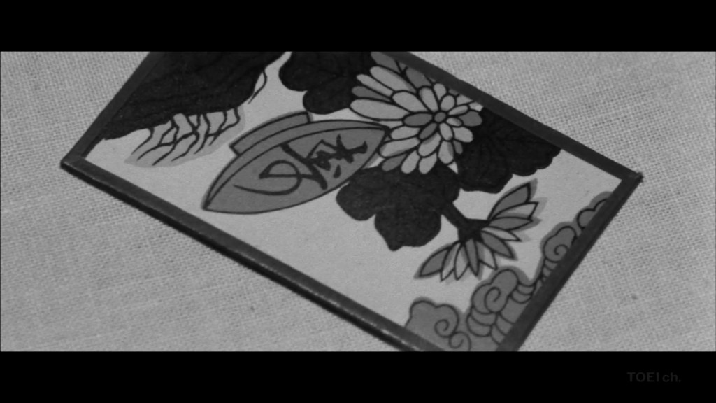 We know enough about Ryuichi’s scruples to understand that he would never cheat at cards like the woman who has made such an impression on him, and I am also sure that in almost any circumstance he would find a snitch despicable, but when he meets Umeko again, he does not hesitate to betray Detective Akiba, who persists in his efforts to arrest the beautiful hanafuda card shark once and for all. Voilà, moral opacity; the discrepancy with the codes of rightness when we humans privilege our passions.