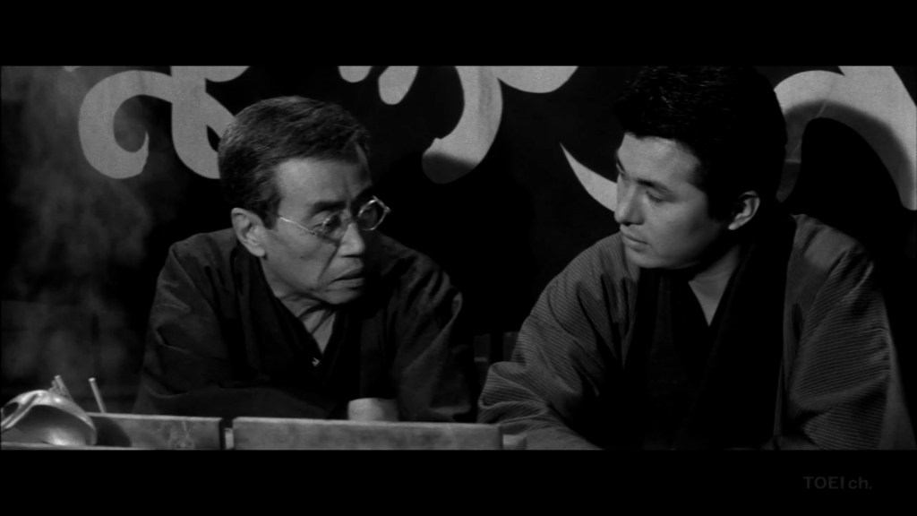 The film is fabulously filled with ambiguous scenes typical of the Showa era, such as a despicable stepfather like Kasugai who tries by all means to have sex with his adopted daughter Hisae; an adopted daughter who is desperate to have the visiting regular customer Ryuichi, enough to get rid of the foreign player’s girlfriend with violent methods. They are ambushed by two men, beaten and driven out of town.A former yakuza gambler who, on more than one occasion in the story, recalls that he had no father or mother to look after him as a child and fully justifies his loyalty to his boss even though he mistreats him because of the code of loyalty, a card player in love with Umeko but with a deep respect for the old man -Moto- who always accompanies her -whether as her father or her husband-. Little by little, old Kasugai’s hatred for Ryuichi intensifies.