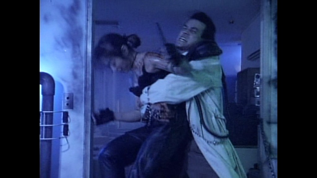 It’s not that we should expect literary depth in an action film with nudity and a low budget, but there’s something about blood, how it flows when the script is too simplistic and those clots have built up too much after the fast-paced street scene in which Kiriko is cornered with a lot of noise so she can’t hear where the swords are being wielded or the bullets are being fired, compared to how the haemoglobin flows when we see Kiriko’s pronounced shoulders. Anyway. The scientist Yamaguchi, the father of Saki, the teenager Kiriko meets on the train, has been kidnapped so that he can finish developing the drug #Desire and make the crooks more resistant. Kidnapped, he works under pressure and achieves his goal, but in the end, the police officer who pretended to help Kiriko was actually an evil woman who ends up killing Yamaguchi and then Saki in front of Kiriko.