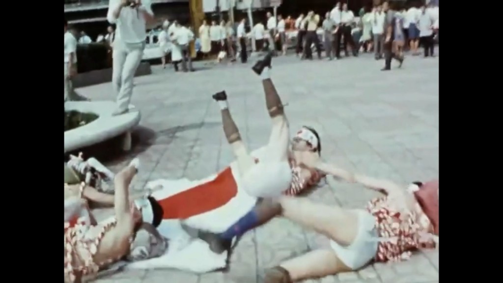 Así de embaucadora lucía la alucinante vanguardia en el Japón de los tiempos hippie, pero lo que aquí veremos en realidad en formato 16mm, en vez de chicos émulos del King Lizard fumando mota y de mujeres maquilladas con psicodelia para seguir el ritmo extraviado del Syd Barret o de la Janis Joplis, serán las más extravagantes expresiones de contracultura. Desde las manifestaciones de los chicos de la Universidad de Nihon en el 68 y protestando con energía por la confrontación a raíz del poema de Hiroaki Yamazaki, hasta el sado masoquista, Mr. K. que sueña con ser un caballo al que mionte una mujer y lo confía a la cámara mientras es presa y sensei en un innombrable garito en el centro de la ciudad en donde ha cambiado de personalidad.