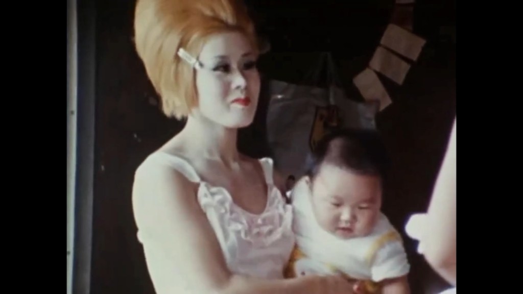 ¿Y por qué soporta el dolor y se mancha la piel para escapar de su vida cotidiana?” pregunta la voz en off. Eron Drops del Blue Films en la loma a campo traviesa y muentyras uno filma otros fornican y la embriagan voluntariamente ella bebe. Al terminar, se pregunta el narrador ¿fue el trabajo de hoy amaergo y triste para ella? Masumi Miyako la striptease número uno en escenario por segundo año, pero el trabajo de Nakajima es en su aspecto formal casi homevideo aunque en su trasfondo filosófico colme una serie de preguntas que hoy mismo casi 60 años después sigan vigentes. ¿No se pregunta acaso si la industria de striptease no sea una triste perspectiva femenina a ´pesar del refinado show escénico y de bailes. Nakajima escucha lo que dicen esas mujeres. Y si ya hemos atendido a la chica que se tatuaba y ha confiado a la cámara que si no se hubiera tatuado cuanto antes, jamás lo habría hecho por pensarlo demasiado, en esta viñeta las mujeres semi desnudas reconocen “no debemos dejar que los clientes se aburran. Hay gente que llega y lee comics o libros en el espectaculo y eso me enoja”. EL barrio rojo de Tobita es pretexto para recordar la ley anti prostitución de diez años antes del filme que se rodó en 1968. Clandestinamente siguen existiendo allí baños turcos y boutiques de mujeres. La prostituta entrevistada, mirada desangelada aunque se esfuerce en sonreír a la cámara dice que po duede permitirse ni un hijo porque por sus amigas ya sabe lo costoso que es. Y finalmente el filme acompaña a Kara Juro a Okinawa, a la ciudad de Koza que vive exclusivamente del ejército por estar asentada en una Base Militar. Pero de noche, en el barrio negro donde Kara Juro conoció a la mujer mestiza Katsuko Nakamoto ¿ha voajado ya a los Estados Unidos? Nueva Koza muestra ser un pueblo fantasma, apenas revela el pasado de desenfreno que vivió aunque incluso en el momento de la filmación no estaba exento de la prostitución por la noche.