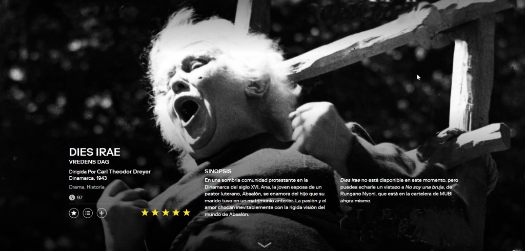 Una obra dramática invencible, esculpida para el cine. ¿Alguien se atreverá a hacer una nueva versión de esta impresionante adaptación? Lo dudo, es insuperable. El hipócrita por excelencia, Absalón (citado últimamente por Gaspar Noé en su Lux aeterna), que minutos antes de poner a Marte de Herlof en el fuego fue capaz de arrepentirse y salvarla, como hizo con la madre de su joven esposa Ana, la exorciza para que se arrepienta en su lugar. Friedrich Nietzsche, el vitalista por excelencia, habría alabado a Marte de Herlof. La primera gran lección que ella enseñará a Absalón y a todo el estúpido tribunal inquisitorial que le precede es el desprecio por sus salmos, sus promesas de salvación y los textos sagrados con los que se jactan. Les dice: «Dejen de ser estúpidos, ¿creen que me interesa la vida eterna en otro lugar, creen que le temo al cielo o al infierno? ¡Temo por mi vida!». ¡No quiero morir quemado! Qué escena, extraordinaria sobriedad en el guion, casi pulcro y preciso como un relojero en plata sobre gelatina; muy aparte, puf, envidiable habilidad con los contrastes de luz y los cameos. Pero el karma inmemorial o la misteriosa condena por nuestros actos devuelve las acciones a Absalón y él conocerá la risa de su joven esposa cuando ella esté con su hijo pequeño. En general, la cinta trata sobre la calumnia, las blasfemias inventadas para subyugar y, en cualquier caso, justificar la persecución con motivos e intereses particulares. En cualquier caso, Absalón posiblemente logró la redención antes de su muerte a través de la metacognición del daño que le hizo a Anne al casarse con ella sin que ella lo amara.