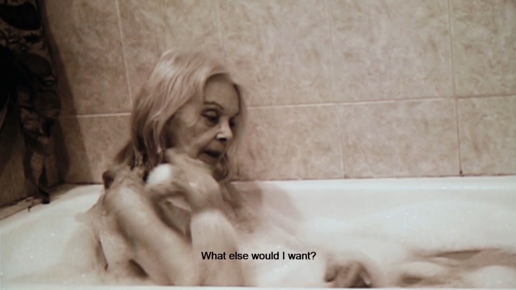 La escena de picada quizá de cámara de drones multiplica las perspectivas de la empatía para el contexto. Más allá de preguntarse si hay personas normales, si una le habla a la madre, hija, hermana y cree que le ha fallado;más allá del cine, están las mujeres. Veamos a una mujer, 90 años y es como una bebé perpleja y escuchamos lo que dice pero es como si lo pensara porque no mueve los labios. Veremos a una mujer de casi 90 años en la bañera que reconoce que anhela las respuestas a los cuestionamientos de siempre; y quiere estar despierta “To be short, the life is a movie. I want this movie to last forever”,;