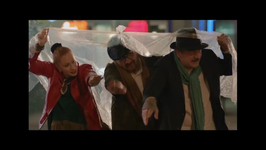 Como dije, los hipérbatos, es decir, las interrupciones de la novela hechas, por Tom y Chiquita no favorecen la atención posible que podría tener la historia, por si fuera poco, la historia misma que refiere a chiquita, tampoco avanza como si se hubiera pensado con más cuidado y coherencia en los conceptos de la amistad antes que en los actos de lo narrado. Aka Morchiladze Hay filmes que adolecen horrorosamente de un buen editor, este es uno de ellos, ninguna de las escenas de la francachela, el baile de tipo griego rompiendo los platos (no es baile georgiano por supuesto) en la estación estraña de Mondo Terzo, la siguiente danza de Nino, la chica de Mojito con Aka sosteniendo una manzana con la boca, etc. ninguna repito, es innecesaria pero eso no evitó que en muchas de ellas se exagerara, especialmente cada vez que llega alguno de los conocidos de Mojito y vuelve a presentarse con su amigo o hermano de visita, así, la narrativa avanza el tiempo sin que avance en argumento. Por eso, ya el estallido al amanecer antes de ser llevado a la estación para su partida, se siente un poco forzado, porque durante todo el recorrido en el tren y el viaje no hay momentos de pequeñas tensiones que justifiquen la explosión del final, me refiero a pequeños alusiones de la muerte de Natia y demás. Por ejemplo me agradó la escena de noche en la piscina, ¿pero después del clavado de Aka y el flirteo de Nino, era necesario todavía el buceo o chapoteo por la pluma o amuleto en el agua? No entendí la referencia o pregunta de trivia al final por parte de Chiquita.