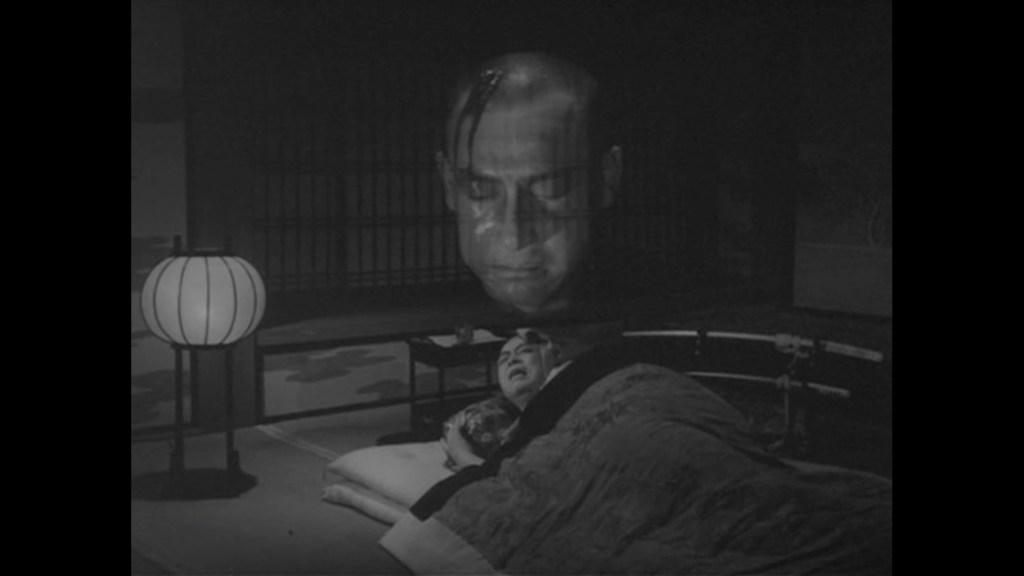 Pronto dos vigilantes perciben el movimiento de los bambús de la tapa del pozo y más tarde Nabeshima sentirá el miedo insoportable. La madre de Mataichiro Omassa termina suicidándose, pero no sin antes maldecir con todas sus fuerza a Nabeshima, así que a través del hyōi” (憑依) o espíritu se posesiona de la gata Koma y nunca dejará descansar ni al Señor feudal ni a su consejero insidioso Toyohira. Primero se posesiona de la suegra Sue y así, en una escena lúgubre muerde el cuello de su nuera y después la escena clásica de manipularla con una especia de energía voraz como si con telepatía y el juego de sombras que es presenciado por el consejero Toyohira y blandiendo su espada combate. El Señor feudal palidece cada vez se escuchan con más frecuencia los maullidos y la trama se vuelve simplemente escalofriante cuando el bakeneko, el espíritu a quien encomendó Omassa la venganza de su hijo se apodera de Sue, la suegra quien de una mordida comienza a manipular como en hipnosis maldita a la joven hasta que, como ya dije, llega Toyohira y mata pero a Sue, por lo que veremos la estela redonda pequeña del hyōi salir literalmente de la cabeza del cadaver que solo era como avatar o huesped.