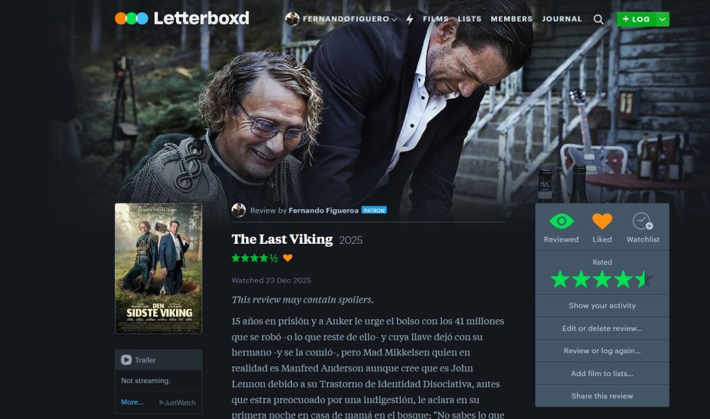 15 años en prisión y a Anker le urge el bolso con los 41 millones que se robó -o lo que reste de ello- y cuya llave dejó con su hermano -y se la comió-, pero Mad Mikkelsen quien en realidad es Manfred Anderson aunque cree que es John Lennon debido a su Trastorno de Identidad Disociativa, antes que estra preocuoado por una indigestión, le aclara en su primera noche en casa de mamá en el bosque: “No sabes lo que es ser yo. Todos quieren ser como yo”; por tanto, jamás aceptaría tampoco que ya se ha robado 9 perros en menos de 4 meses y ha saltado desde un segundo piso y desde el auto en marcha por ser llamado Manfred. No, su principal preocupación y no una bolsa con millones, es cuidar a su hermano.En el mismo humor anisado e histriónico que su Retfærdighedens ryttere y Adams æbler, Thomas Jensen sigue su apuesta por transfigurar la imbecilidad -de al menos uno de los personajes de sus tramas- en ἀλήθεια de tiempos actuales (aletheia como “verdad” o desocultamiento, a como la vio Heidegger). Al obeso Flemming, compinche en tiempos remotos de Ankar quiere el dinero porque ya se gastó su parte y ahora busca la pasta de Ankar. Se le hizo sencillo descalabrar a Freya y ni siquiera unas tachuelas en los pies le detuvieron de seguirla hasta la cabaña en el bosque para perseguir a Ankar y Manfred -quise decir Lennon-. En el despreocupado abuso nde Flemming por usar su gore explícito con tal de ser llevado hasta el dinero, le rompió la cara a Margrit que se sentía boxeadora y le cortó un dedo a Manfred atado junto a su hermano.
