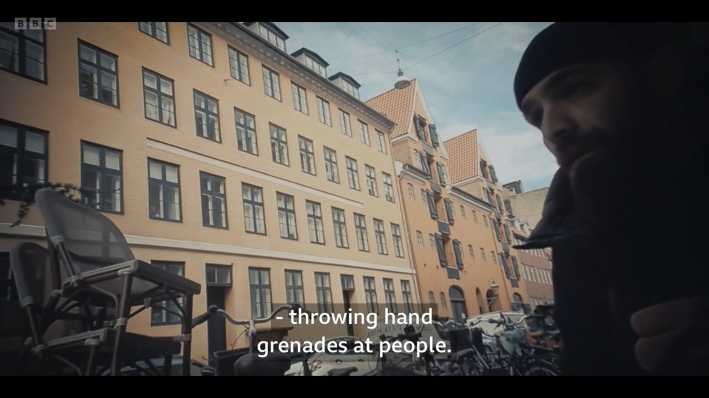 Para muestra de ello y verificar la credibilidad de la abogada el primer “rodaje” por llamarlo así fue en Freetown Christiania el más grande mercado negro de hachís del norte de Europa en pleno Copenhagen, según dice el director en off. El contacto que enlazará de vuelta a Amira con el mundillo criminal es un tal Wassem, co fundador de la banda callejera Brothas. De todas maneras, os adelanto 2 grandes desilusiones para los que esperen justicia o alguna de esas entelequias tan frecuentadas en los discursos y sin que sea ajena a la agenda de país alguno. Primero que el nombre del empresario poderoso y multimillonario detrás de una veintena de grupos delictivos jamás lo sabremos por cuestiones legales del mismo gobierno de Dinamarca y por protección legal de la producción de la serie, sin poder mencionar nombre de empresarios cuya participación concreta en los delutos no pueda ser demostrada; y segundo, que la abogada Amira regresa de una de sus múltiples entrevistas encubierta y la grabación que traía fue borrada intencionalmente lo que aunado a su insistencia de que se cancelara la publicación de la serie, demuestran que volvió a el clandestinaje de respaldar con subterfugios legales a sus clientes. Y hablando de clientes, estos son algunos que tuve la precaución de registrar en mis notas tras cada uno de los episodios: