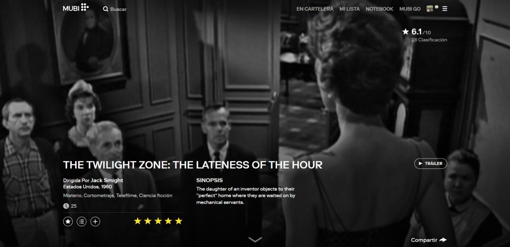 Esta vez fue demasiado lejos Serling. ¿Una rebelión de robots domésticos?, no! La peligrosa evolución de la inteligencia artificial creada para servirnos, en una época en que apenas era común tener en los hogares TV. inquietante, pero sobre todo tempranísima advertencia del peligro de la evolución intelectual de un “programa humano” que ha sido creada artificialmente para nuestro servicio y antojo. Dudo mucho que su alarmante quid, a donde conduce esto quiero decir, se haya comprendido en ese entonces 1959, pero ni tantito menos que hoy, más de medio siglo después y la mejor prueba es la mediocre calificación de este episodio.
